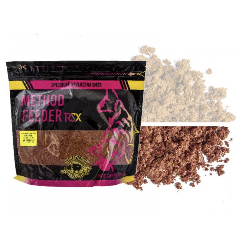 Method Feederové směsi jsou v nabídce již několik let. Jejich obliba stoupá překvapivým způsobem a přesně toto byl důvod k postavení nové, modernější a především výkonnější směsi. Ta bude zajímat zejména fajnšmekry a závodníky. Method Feeder RSX se ve svém složení přibližuje spíše k nutričně nasyceným boilies, než klasickým směsím. Právě tato skutečnost je jedním z důvodů, jež radikálně zvyšuje atraktivitu. V tomto okamžiku jsou k dispozici dvě varianty. Prvním je kombinace Jahoda/Mango/Čili. Prolnutí těchto tří dráždidel dává produktu naprosto jedinečnou formu, která vás bude jistě velmi bavit. Stejně jako u příchutě Satan se zde vzájemně doplňují živočišné enzymatické bílkoviny, extrémně intenzivní aromatické látky a pikantní chutě. Neodolatelná kombinace. Druhou je Satan, kde se využívá naší fenomenální kombinace atraktorů. Může se zdát, že varianta Satan nemusí být pro rychlý způsob rybolovu tou ideální formou, ovšem opak je pravdou. Celoročně atraktivní kombinace s výhodou v chladném období je přesnou charakteristikou.